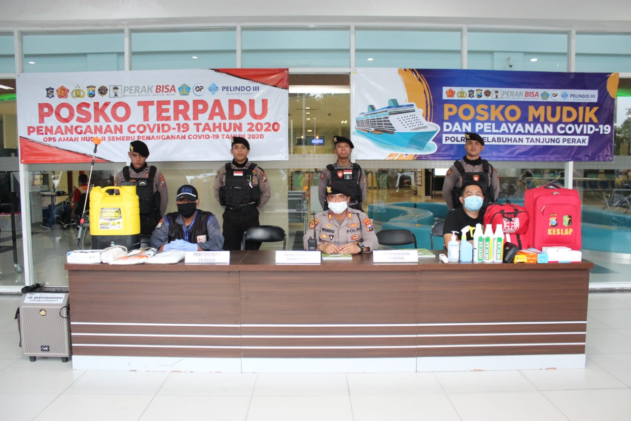 Seperti yang dilakukan anggota Polres Pelabuhan Tanjung Perak dan sekuriti pelabuhan yang berjaga di Posko Terpadu Penanganan Covid-19 yang sekaligus menjadi Posko Mudik Lebaran 2020.