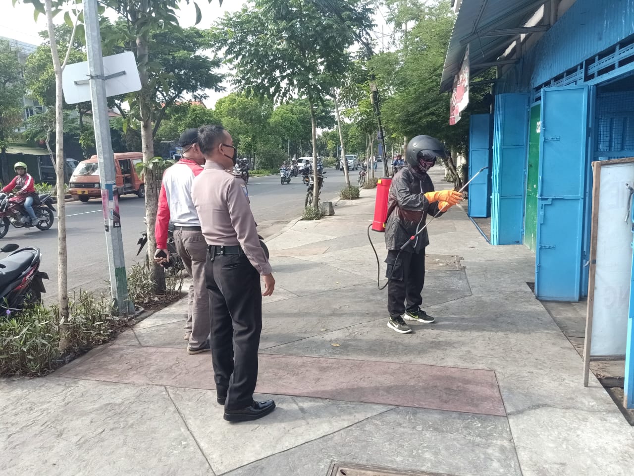 Menurut Kapolsek Krembangan, Kompol Nur Suhud, kegiatan penyemprotan rutin dilakukan setiap hari bersama instansi samping.