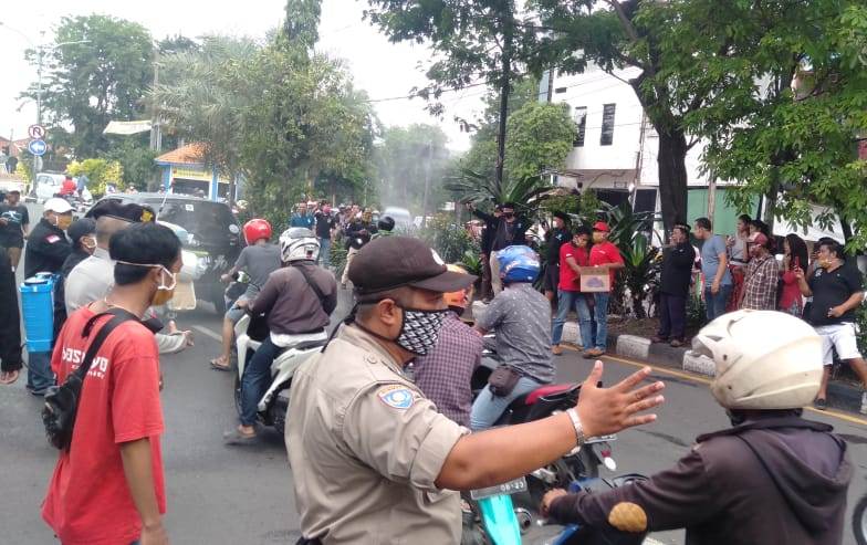 Saat itu penyemprotan dilakukan di sepanjang jalan, termasuk pada pengendara yang melintas.
