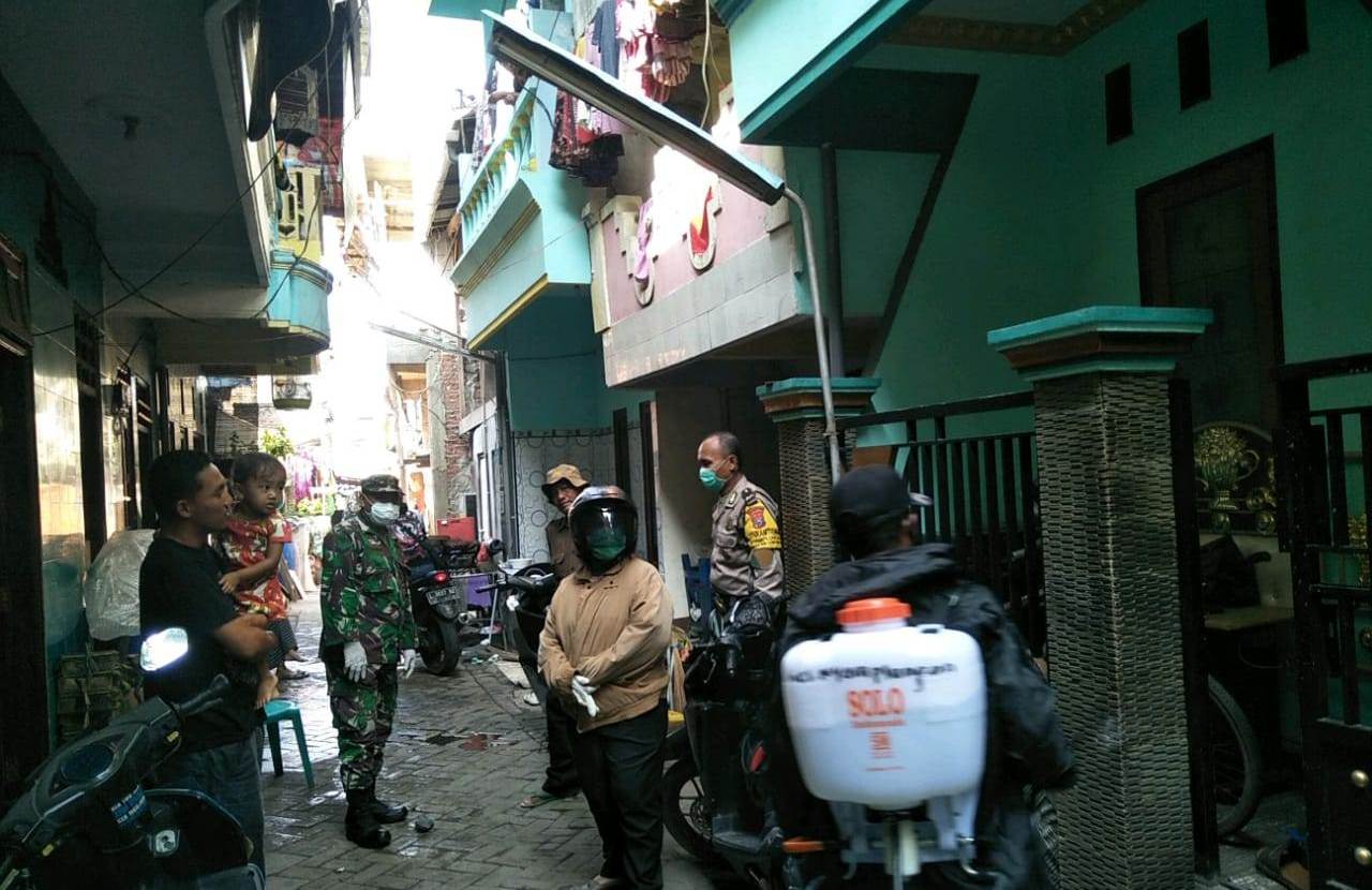 Seputarperak.com- Penyemprotan disinfektan dilakukan Aipda Farid, Babinkamtibmas Nyamplungan, Polsek Pabean Cantikan, Polres Pelabuhan Tanjung Perak bersama Babinsa, Kepala Kelurahan Nyamplungan dan Linmas di pemukiman RW 01 Jalan Benteng, Kamis pagi, 9 April 2020.