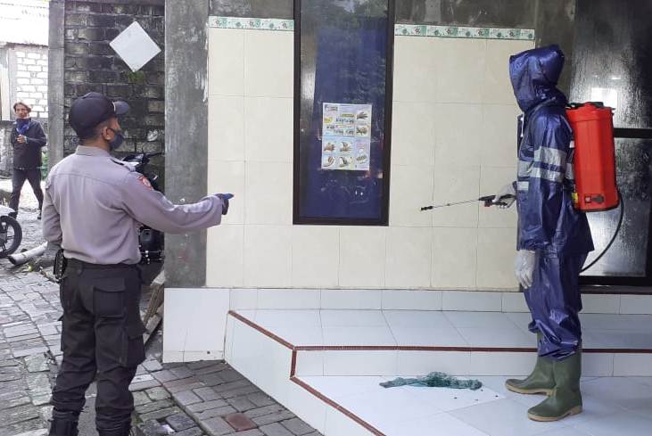 Menurut Kapolsek Asemrowo, AKP Hari Kurniawan, kegiatan penyemprotan disinfektan ini rajin dilakukan setiap hari sebagai upaya menekan penyebaran virus corona atau Covid-19.
