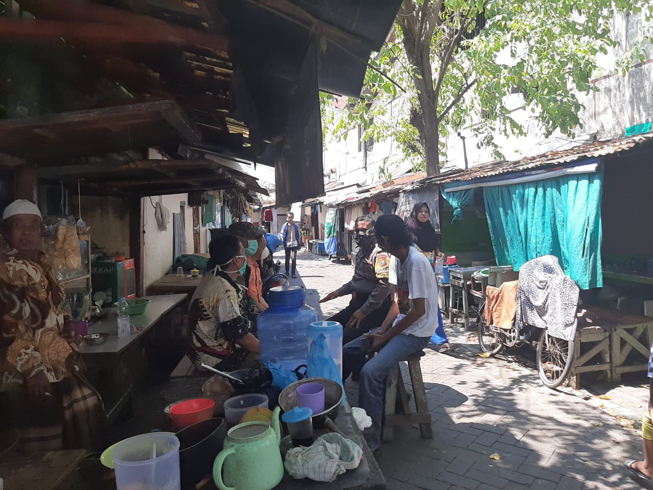 Seputarperak.com- Himbauan jaga kebersihan disampaikan Aiptu M Yasin, Babinkamtibmas Krembangan Utara, Polsek Pabean Cantikan, Polres Pelabuhan Tanjung Perak kepada warga Pesapen Pasar, Senin siang, 13 April 2020.
