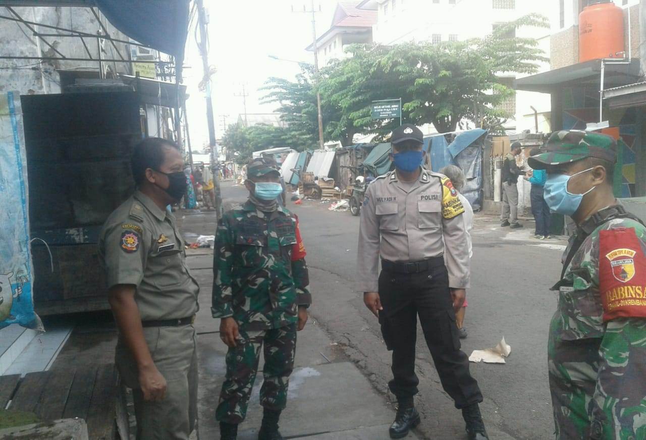 Seputarperak.com- Untuk menjaga agar tidak ada pedagang yang nekat berjualan di Pasar PPI Jalan Jepara, Polsek Krembangan, Polres Pelabuhan Tanjung Perak bersama instansi samping melakukan penjagaan ketat, Rabu, 15 April 2020.