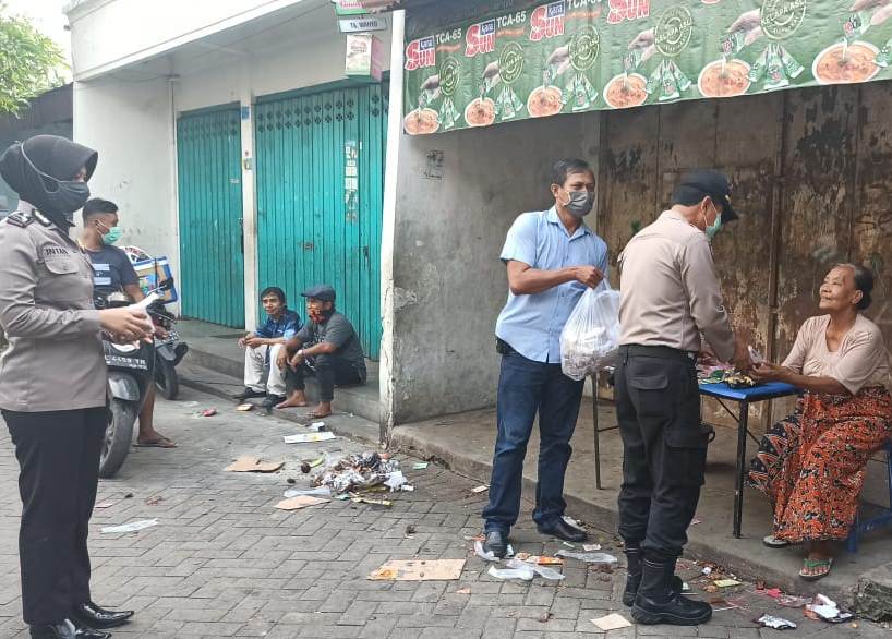 Nasi bungkus ini dibagikan Kapolsek Asemrowo kepada para pedagang, penarik becak dan janda-janda tua.