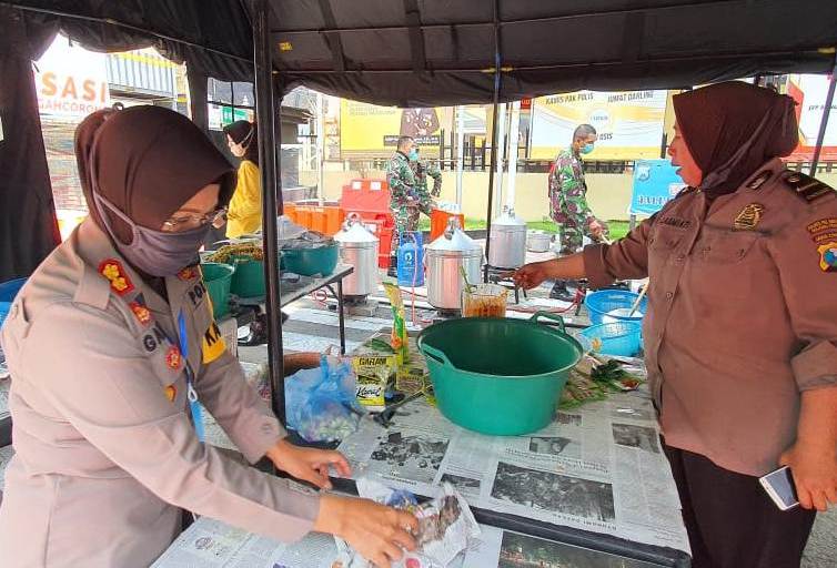 Makanan di dapur umum ini dibuat sebanyak 500 bungkus, yang dibagikan ke Polsek-Polsek jajaran untuk didistribusikan kepada masyarakat miskin yang terdampak secara ekonomi oleh Pandemi Covid-19.