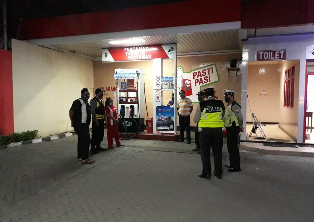 Seputarperak.com- Patroli dialogis dilakukan Polsek Asemrowo, Polres Pelabuhan Tanjung Perak di SPBU Jalan Tambak Langon, Rabu malam, 15 April 2020.