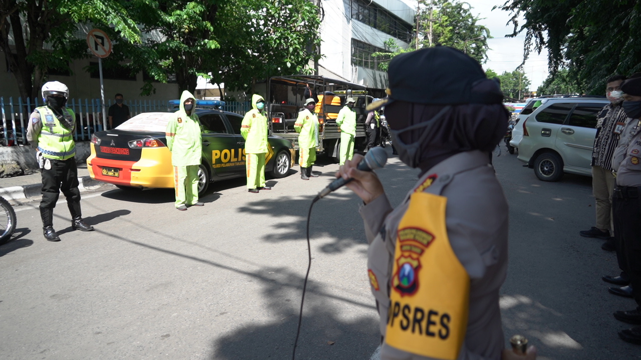 Usai apel para personil yang dilibatkan bergerak menuju sasaran zona merah untuk melakukan penyemprotan.