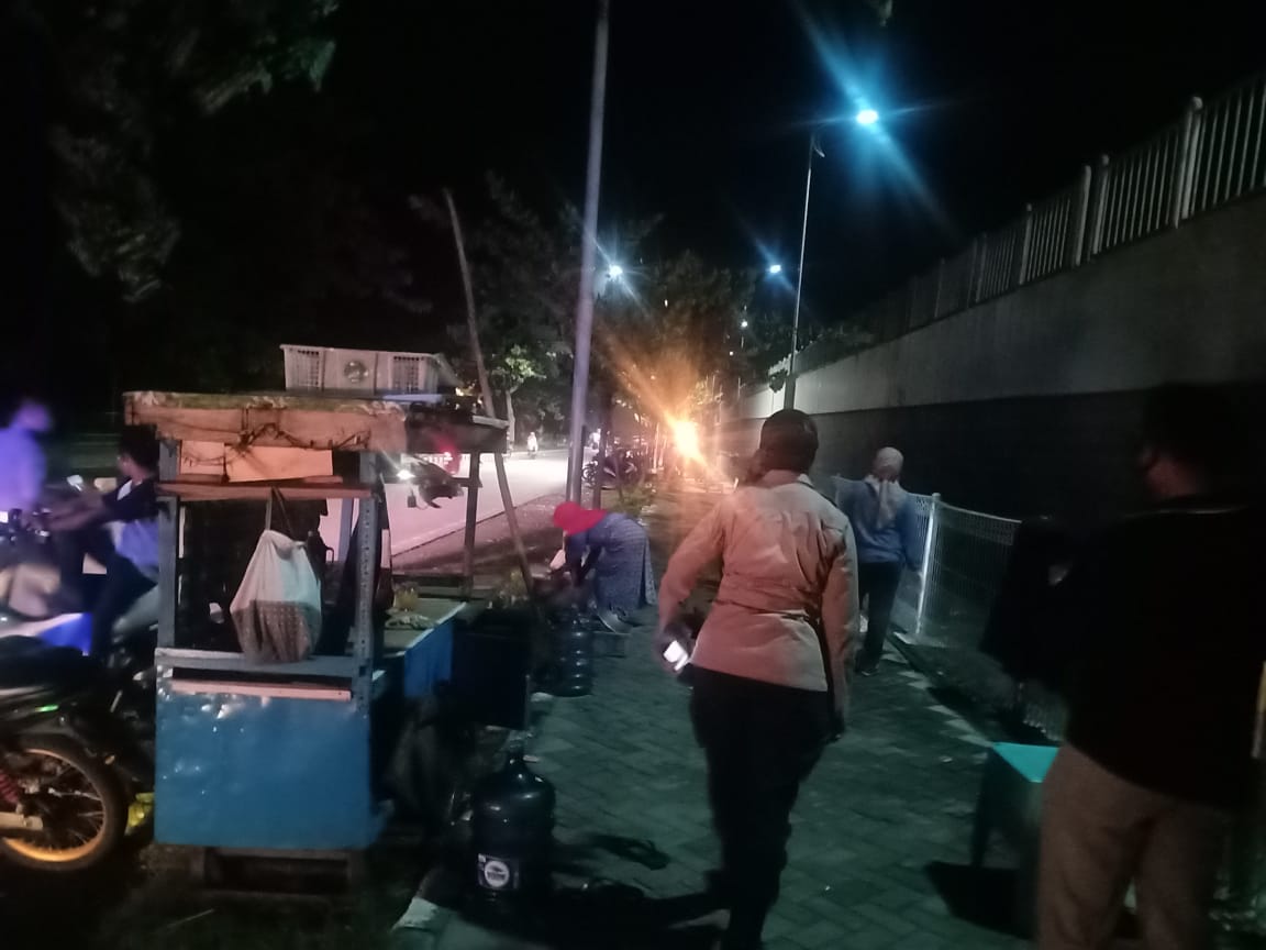 Seputarperak.com- Kapolsek Kenjeran, Polres Pelabuhan Tanjung Perak, Kompol Esti Setija Oetami, SH bersama kepala Kecamatan Kenjeran, Ibu Henny Indriati mendatangi para pedagang kaki lima (PKL) di seputaran Jembatan Suramadu, Jumat malam, 17 April 2020.