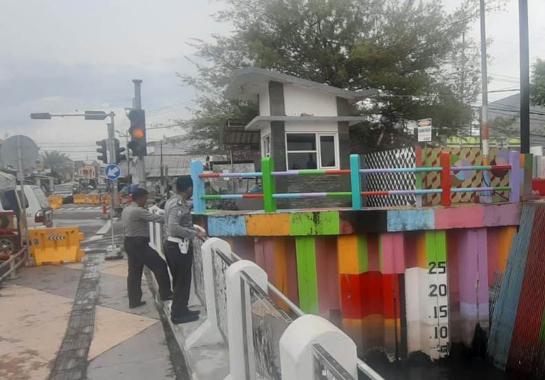 Saat itu pemantauan dilakukan oleh personil Unit Lantas, dimana ketinggian air masih dalam batas normal dan dipastikan banjir tidak akan terjadi.