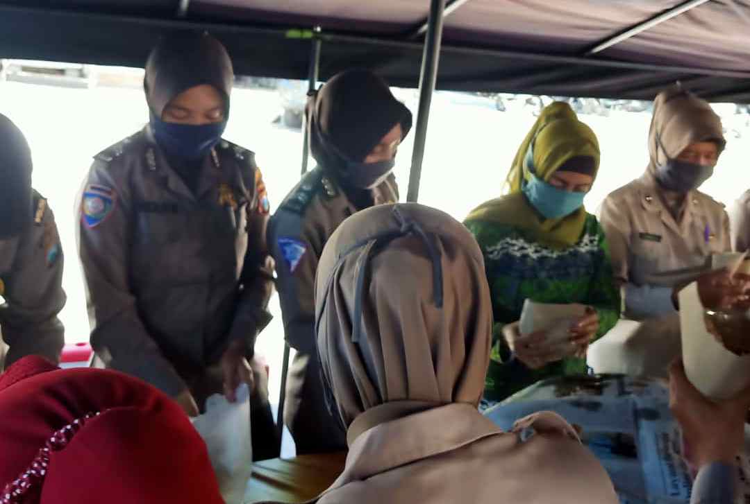 Sejumlah personil Polwan, ASN dan PHL perempuan, terlihat membungkus makanan yang akan dibagikan kepada masyarakat.