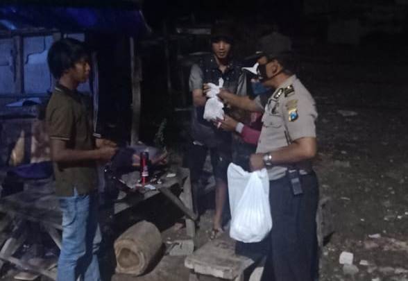 Seputarperak.com- Pembagian nasi bungkus dilakukan Ipda Dwi Rahardjo, Kanit Binmas Polsek Kenjeran, Polres Pelabuhan Tanjung Perak di Jalan Kedung Cowek dan Jalan Tambak Wedi, Rabu dini hari, 29 April 2020.