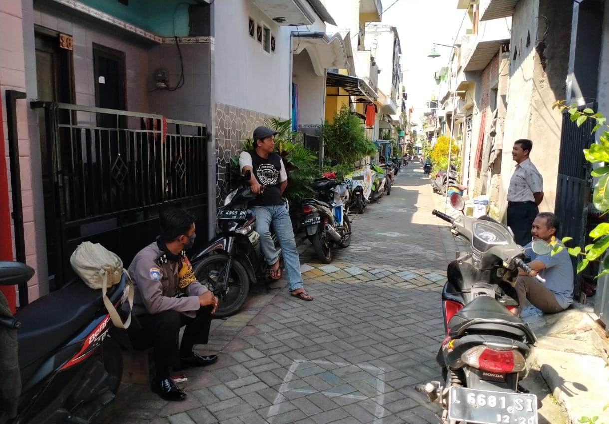 Seputarperak.com- Sosialisasi penggunaan masker disampaikan Aipda Dhanu Kriswana, Babinkamtibmas Sukolilo Baru, Polsek Kenjeran, Polres Pelabuhan Tanjung Perak kepada warga RT 04 RW 02, Sabtu pagi, 2 Mei 2020.