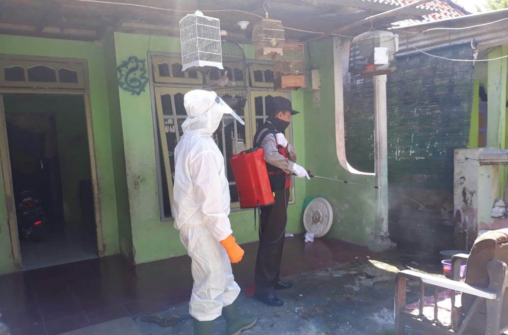 Saat itu penyemprotan disinfektan dilakukan Aiptu Supriadi bersama Linmas Kelurahan Bulak.