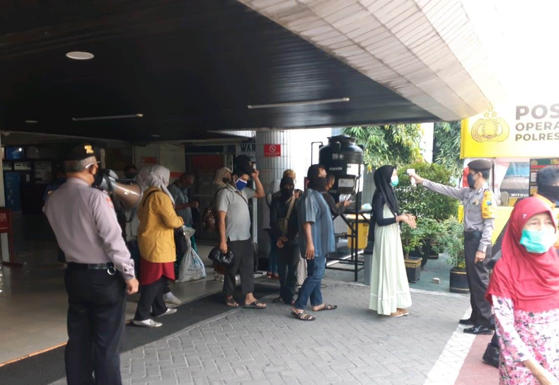 Seputarperak.com- Pemeriksaan suhu badan penumpang kereta api di Stasiun Surabaya Kota dilakukan anggota Pospam Operasi Ketupat Semeru, Polsek Pabean Cantikan, Polres Pelabuhan Tanjung Perak, Selasa pagi, 12 Mei 2020.