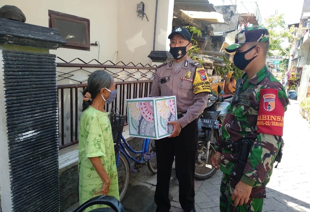 Babinkamtibmas Wonokusumo Bagikan Sembako Gratis Bantuan Polri-TNI Untuk Warga
