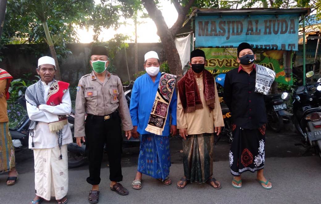 Seputarperak.com- Pengamanan Sholat Idul Fitri (Sholat Ied) dilakukan personil Polsek Semampir, Polres Pelabuhan Tanjung Perak di Masjid Al Huda, Jalan Tenggumung Wetan, Minggu pagi, 24 Mei 2020.
