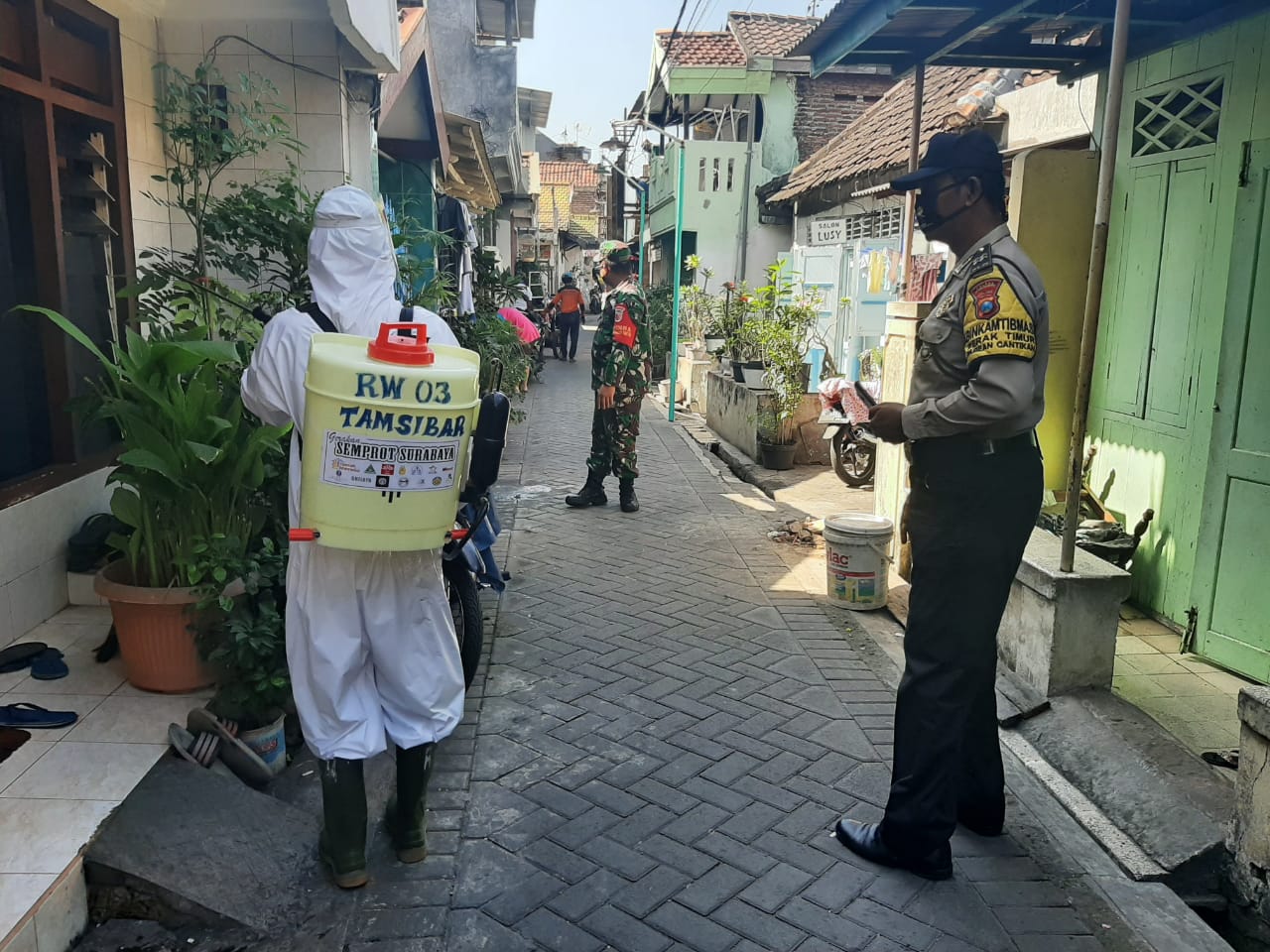 Kegiatan penyemprotan ini dikawal Aiptu Marijono, Babinkamtibmas Perak Timur, Polsek Pabean Cantikan, Polres Pelabuhan Tanjung Perak bersama Babinsa.