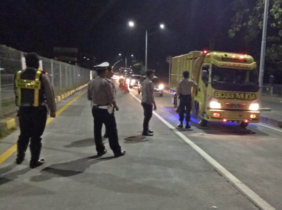 Seputarperak.com- Penyekatan kendaraan dilakukan anggota Pospam Check Point Suramadu, Polres Pelabuhan Tanjung Perak, Jumat malam, 5 Juni 2020.