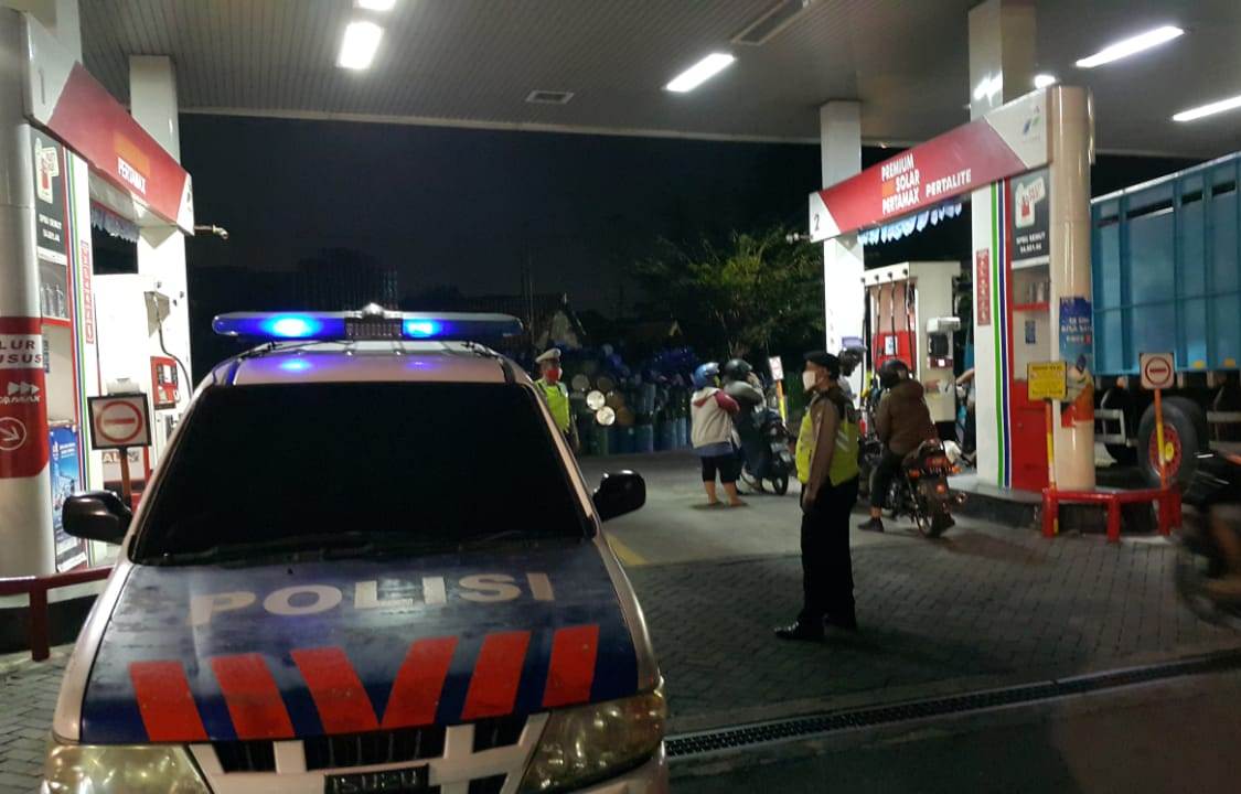 Seputarperak.com- Kegiatan patroli malam dilakukan personil Polsek Pabean Cantikan, Polres Pelabuhan Tanjung Perak di SPBU Jalan Stasiun Kota, Senin, 15 Juni 2020.