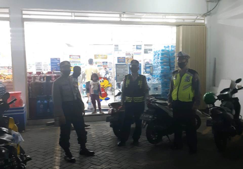 Seputarperak.com- Polsek Pabean Cantikan, Polres Pelabuhan Tanjung Perak melaksankan patroli rutin di mini market Indomart, Jalan KH Mas Mansyur, Jumat malam, 19 Juni 2020.