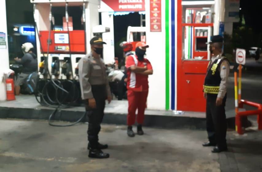 Seputarperak.com- Patroli malam dilakukan personil Polsek Pabean Cantikan, Polres Pelabuhan Tanjung Perak di SPBU Jalan Stasiun Kota, Jumat, 19 Juni 2020.