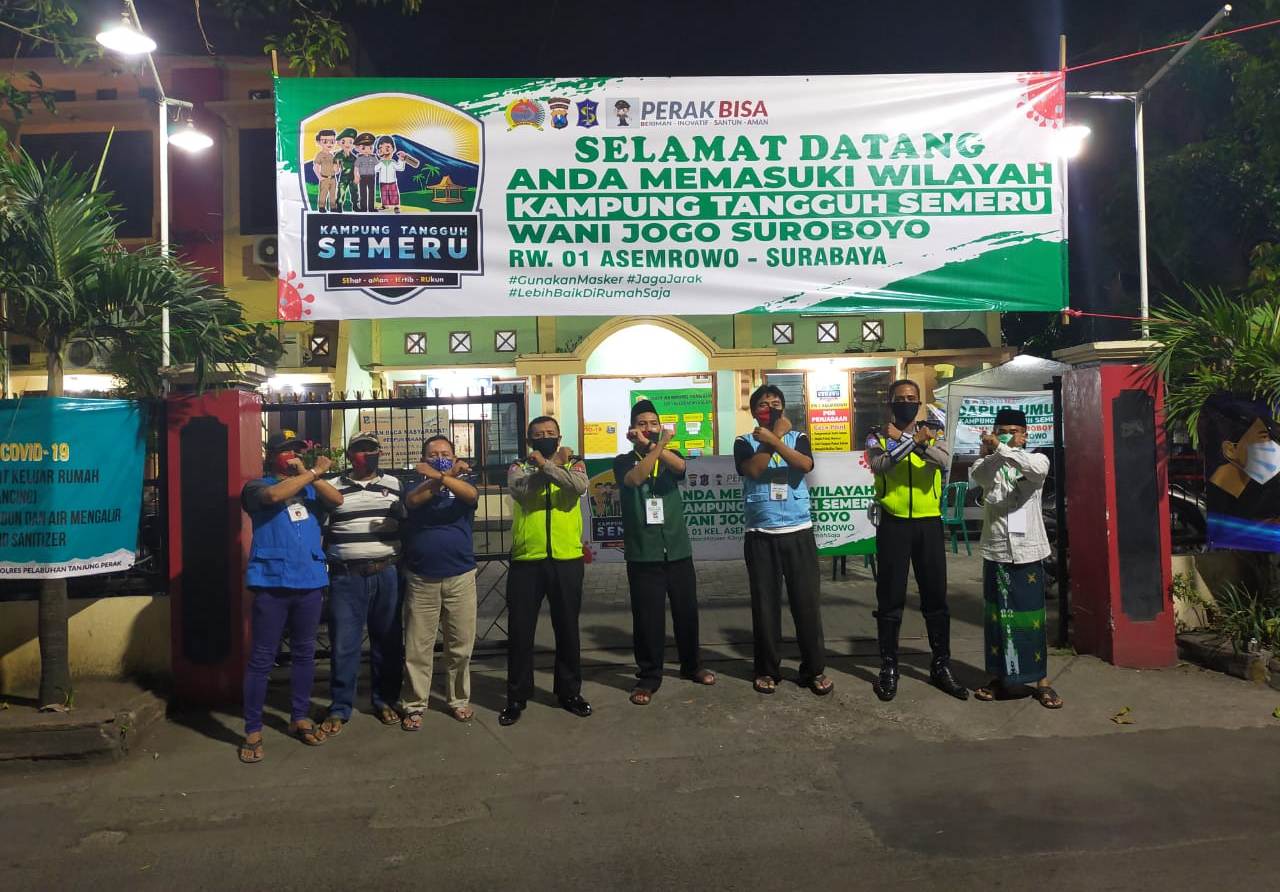 Seputarperak.com- Patroli dilakukan anggota Polsek Asemrowo, Polres Pelabuhan Tanjung Perak di Kampung Tangguh Semeru RW 01 Jalan Asemraya, Kelurahan Asemrowo, Rabu malam, 24 Juni 2020.