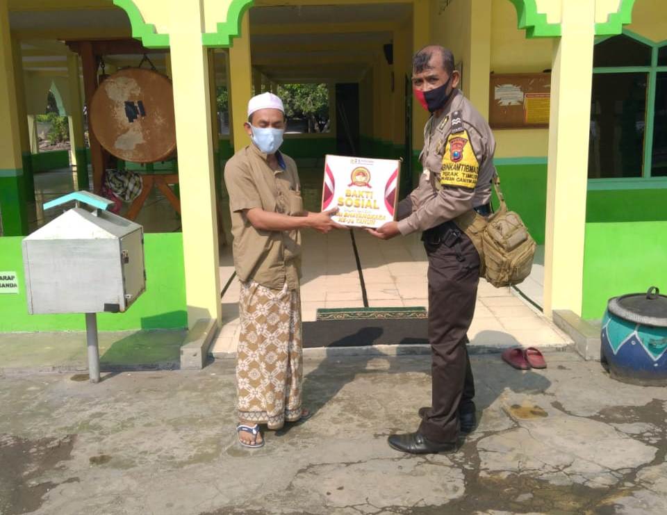 Seputarperak.com- Aiptu Marijono, Babinkamtibmas Perak Timur, Polsek Pabean Cantikan, Polres Pelabuhan Tanjung Perak menyerahkan paket Sembako kepada Bapak Ustadz Hasan, takmir Masjid Raudhatul Jannah di Jalan Johor.