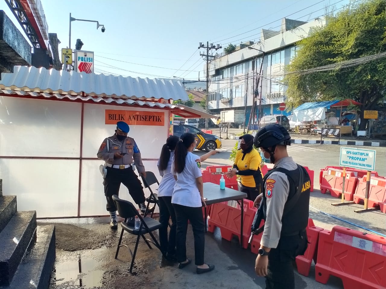 Didampingi personil Propam dan anggota Satsabhara, pengecekan suhu badan dilakukan terhadap setiap personil, ASN, PHL dan juga tamu.