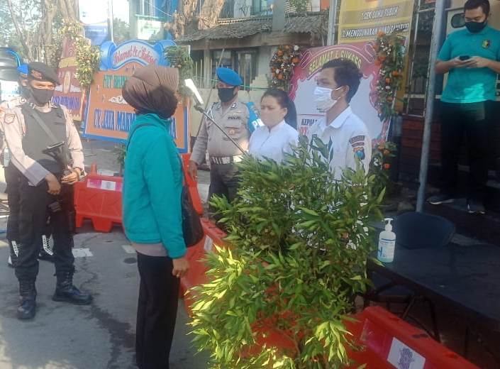 Saat itu pemeriksaan suhu badan dilakukan di depan gerbang Mapolres dengan sasaran personil, ASN, PHL dan tamu yang akan masuk ke dalam lingkungan Mako.