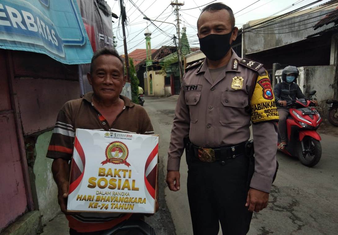 Sembako tersebut berasal dari Polres Pelabuhan Tanjung Perak yang sengaja dibagikan untuk masyarakat di Polsek-Polsek jajaran sebagai wujud bakti sosial dalam memperingati HUT Bhayangkara Ke 74.