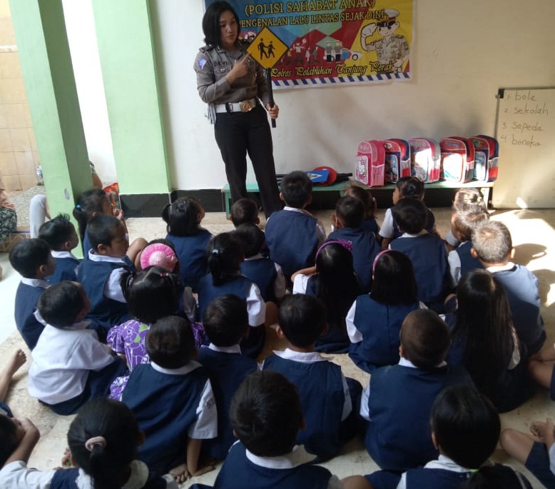 Seputarperak.com- Unit Dikyasa (pendidikan dan rekayasa) Satlantas Polres Pelabuhan Tanjung Perak, juga mengadakan program Polsanak di TK Indira Jalan Pogot, Kenjeran, Selasa, 14 Agustus 2018.