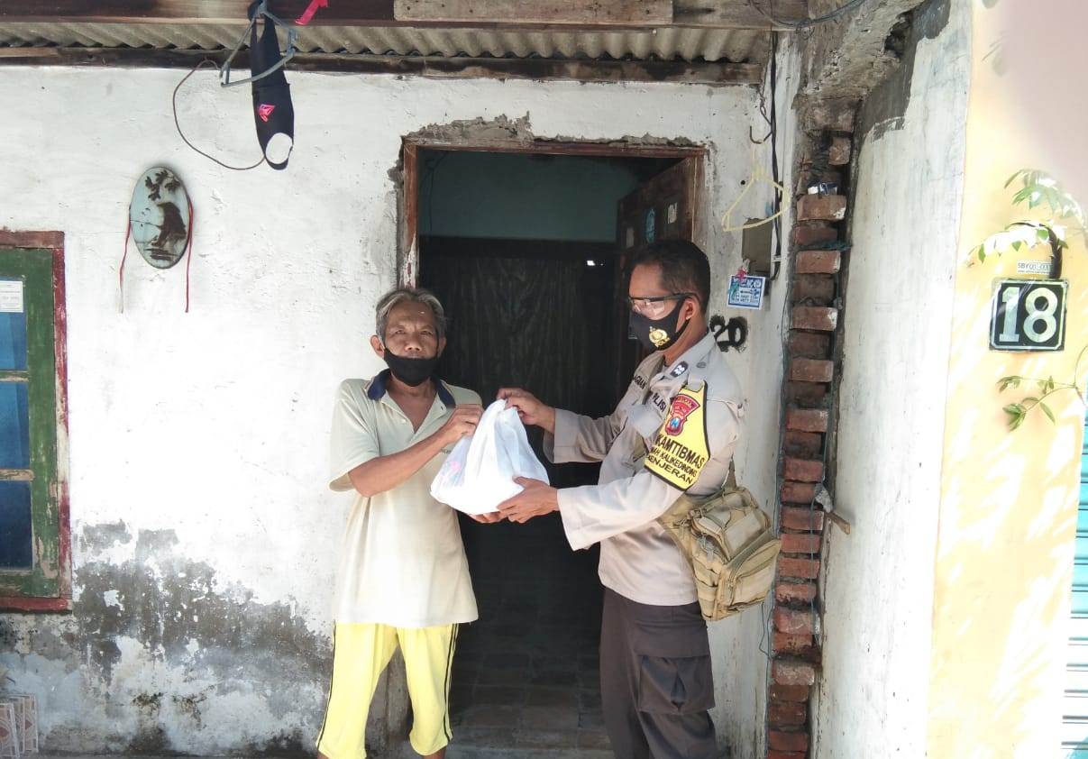 Seputarperak.com- Aiptu Lagiman, Babinkamtibmas Tanah Kali (Takal) Kedinding, Polsek Kenjeran, Polres Pelabuhan Tanjung Perak membagikan beberapa paket sembako dalam rangka memperingati HUT Bhayangkara Ke 74, Sabtu pagi, 11 Juli 2020.
