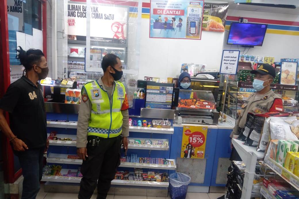 Seputarperak.com- Polsek Semampir, Polres Pelabuhan Tanjung Perak melaksanakan patroli di mini market Indomart, Jalan Sidotopo Lor, Minggu malam, 19 Juli 2020.
