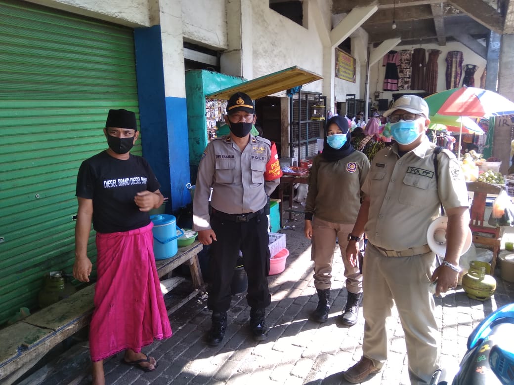 Selain itu para pengunjung dan pedagang pasar juga diingatkan agar rajin mencuci tangan dan menjaga jarak sosial dengan orang lain minimal satu meter.