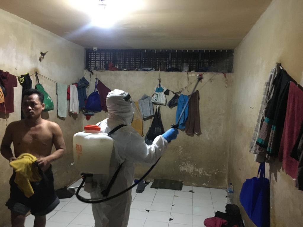 Saat itu seluruh bagian ruang tahanan dilakukan penyemprotan tanpa terkecuali. Mulai bagian lantai, dinding sampai teralis.