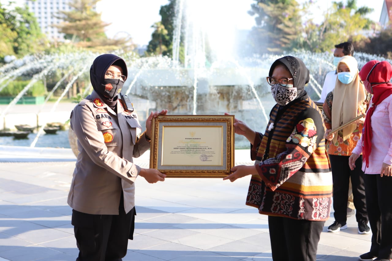 Saat itu penerimaan penghargaan diterima oleh Kapolres Pelabuhan Tanjung Perak, AKBP Ganis Setyaningrum, S.Si, MH yang didampingi mantan Wakapolres Kompol Ahmad Faisol Amir, S.I.K, M.Si.