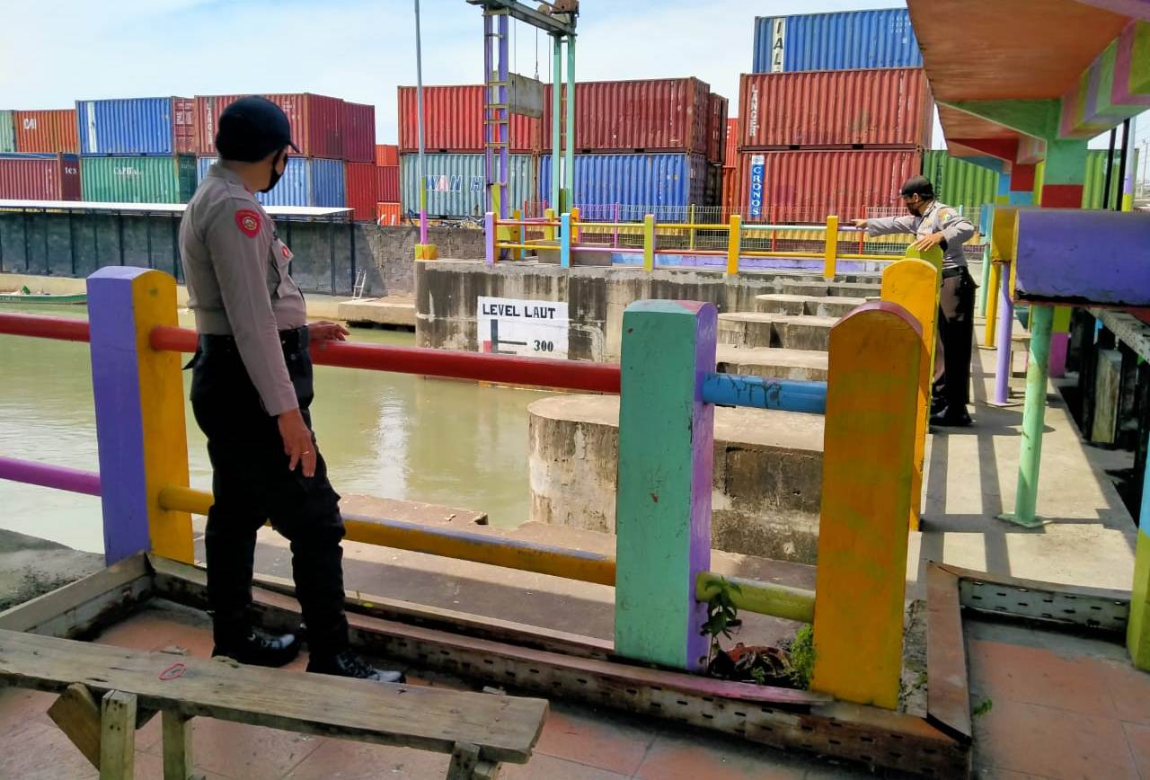 Seputarperak.com- Personil Polsek Asemrowo, Polres Pelabuhan Tanjung Perak memantau debit air di Rumah Pompa Balong 2, Jalan Greges Barat, Kelurahan Tambak Sarioso, Senin siang, 3 Agustus 2020.