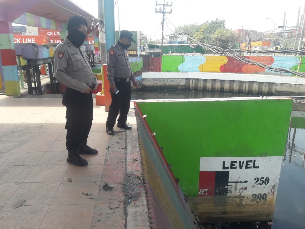 Seputarperak.com- Pemantauan debit air dilaksanakan personil Unit Sabhara Polsek Asemrowo, Polres Pelabuhan Tanjung Perak di Pintu Air Balong II, Jalan Greges, Kelurahan Tambak Sarioso, Senin siang, 10 Agustus 2020.