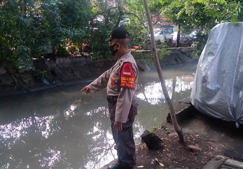 Seputarperak.com- Pemantauan debit air dilakukan personil Polsek Semampir, Polres Pelabuhan Tanjung Perak di Sungai Pegirian, Rabu siang, 12 Agustus 2020.