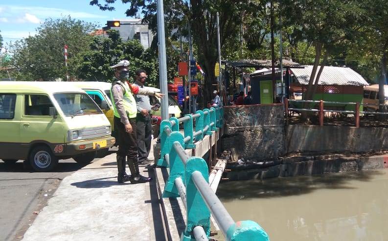 Seputarperak.com- Pemantauan debit air dilakukan anggota Polsek Pabean Cantikan, Polres Pelabuhan Tanjung Perak di Sungai Kalimas, Rabu siang, 12 Agustus 2020.