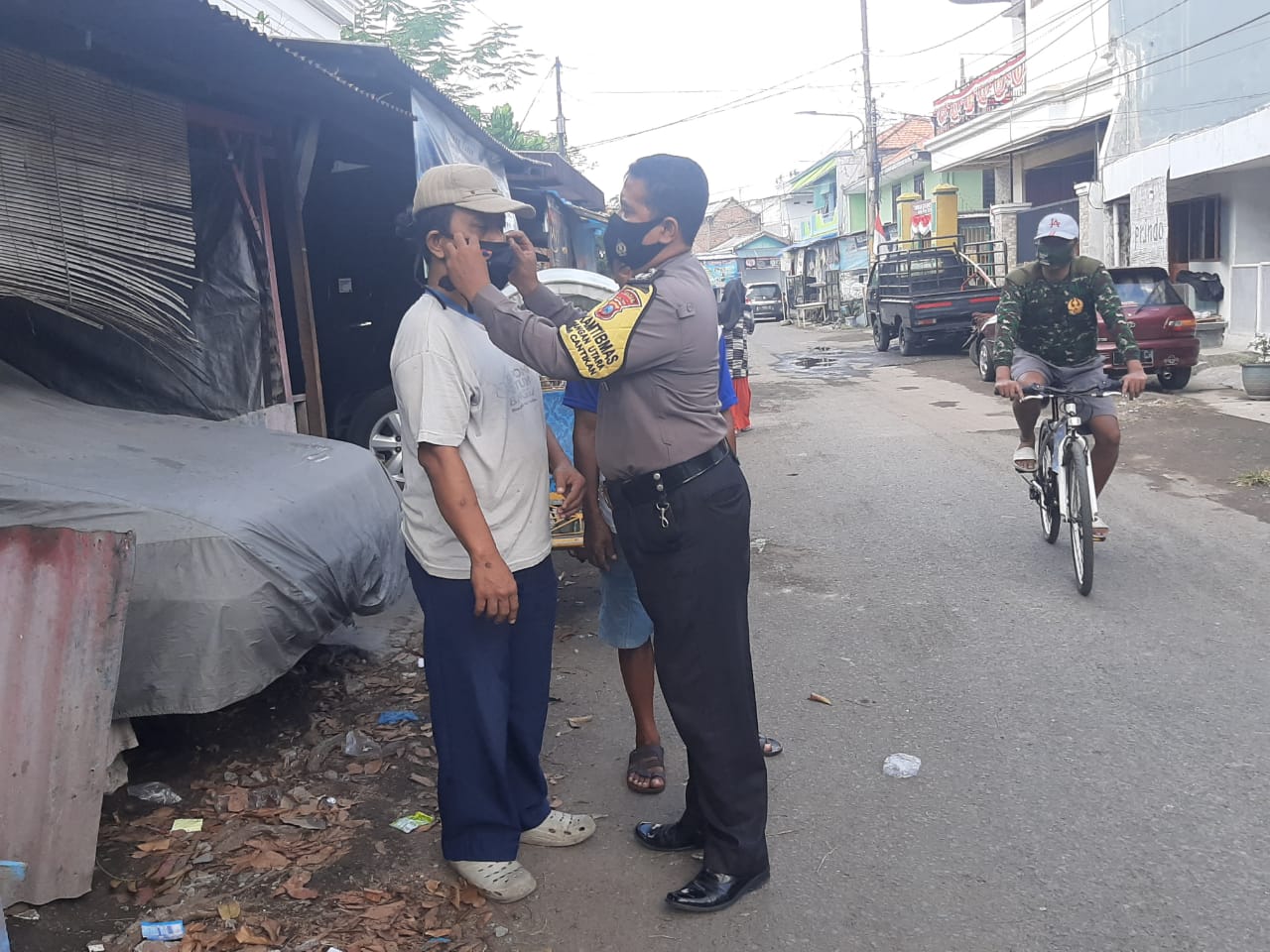 Dalam setiap menemui warga yang tidak menggunakan masker, Aiptu M Yasin menegur dan memberikan masker gratis.