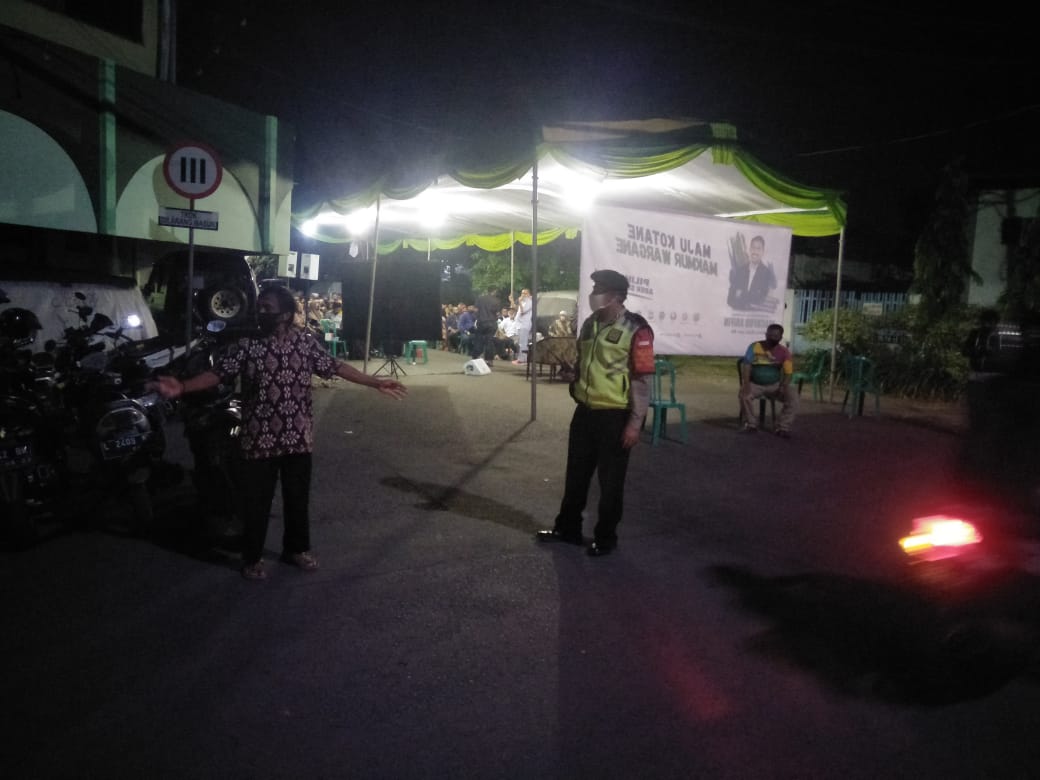 Seputarperak.com- Pengamanan dilakukan personil Polsek Pabean Cantikan, Polres Pelabuhan Tanjung Perak dalam kunjungan Cawali (Calon Walikota) Surabaya, Bapak Machfud Arifin di Jalan Teluk Aru, Jumat malam, 14 Agustus 2020.