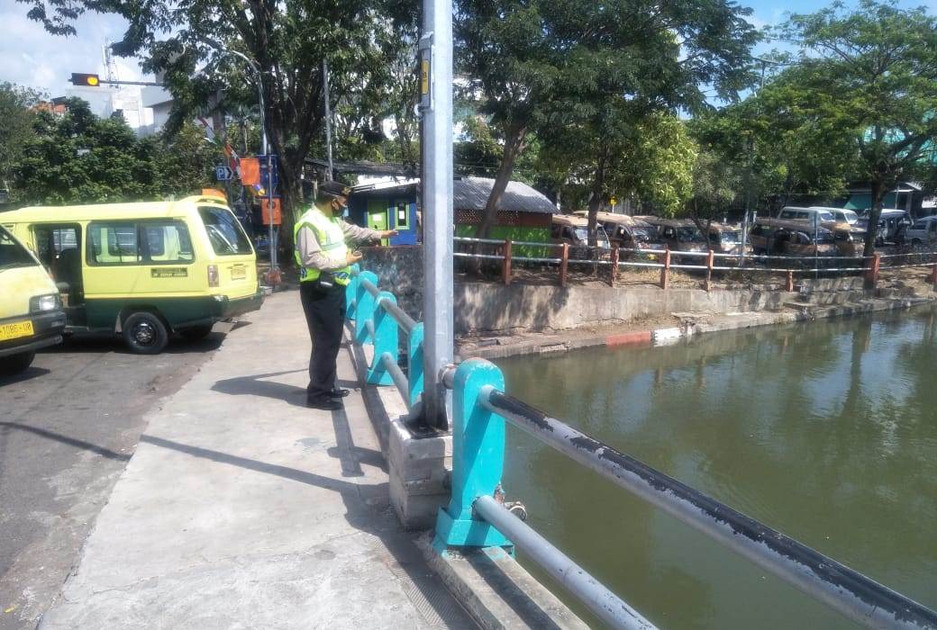 Seputarperak.com- Personil Polsek Pabean Cantikan, Polres Pelabuhan Tanjung Perak melakukan pemantauan debit air di Sungai Kalimas, Sabtu siang, 22 Agustus 2020.