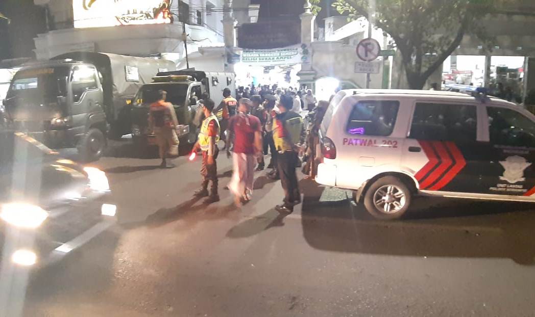 Seputarperak.com- Kegiatan operasi penertiban masker dilakukan personil Polsek Semampir, Polres Pelabuhan Tanjung Perak bersama Satpol PP dan TNI di seputaran wisata religi Ampel, Kamis malam, 27 Agustus 2020.