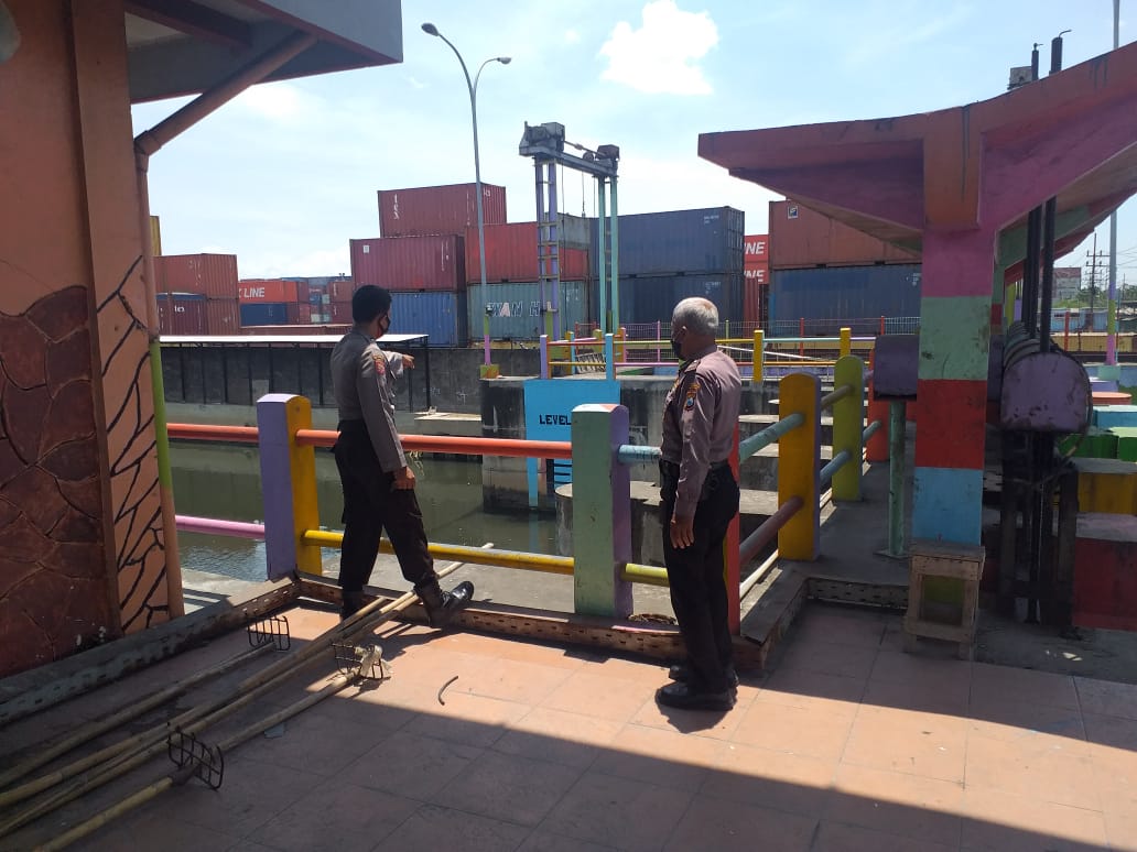 Seputarperak.com- Pemantauan debit air dilakukan personil Polsek Asemrowo, Polres Pelabuhan Tanjung Perak di Rumah Pompa Balong II, Kelurahan Tambak Sarioso, Senin siang, 5 Oktober 2020.