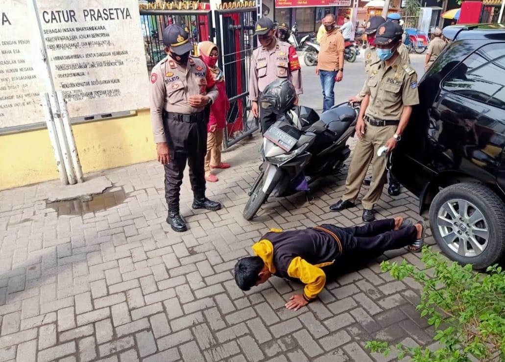 Masing-masing 4 orang yang tidak menggunakan masker diberikan sanksi penyitaan KTP oleh Satpol PP, sementara 10 orang lainnya diberikan sanksi sosial dan sanksi fisik. Mulai pengucapan teks Pancasila dan ada pula yang dijatuhi push up.