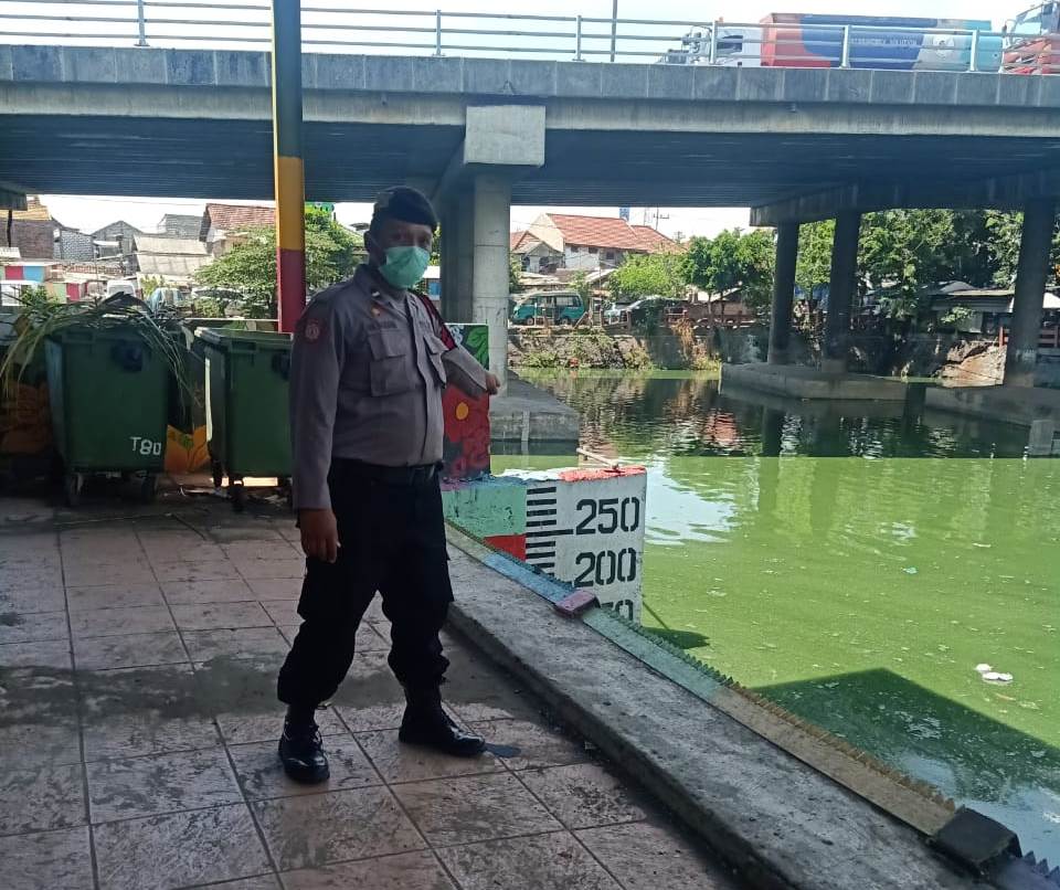 Seputarperak.com- Personil Polsek Krembangan, Polres Pelabuhan Tanjung Perak melakukan pemantauan debit air di Pintu Air Gadukan, Sabtu siang, 10 Oktober 2020.