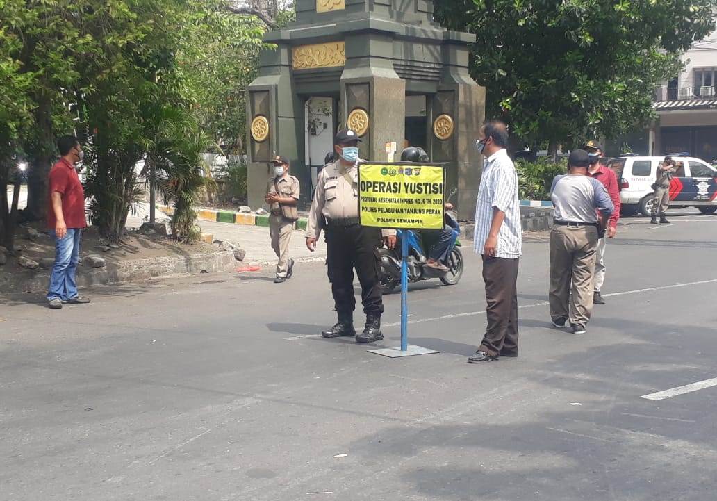 Seputarperak.com- Operasi yustisi protokol kesehatan pencegahan Covid-19 berupa penertiban masker digelar Polsek Semampir, Polres Pelabuhan Tanjung Perak di Jalan KH Mas Mansyur, Sabtu pagi, 17 Oktober 2020.
