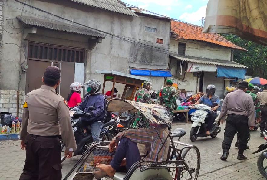 Seputarperak.com- Polsek Krembangan, Polres Pelabuhan Tanjung Perak melaksanakan operasi penertiban masker bersama instansi samping di Pasar Kalianak Timur, Kelurahan Morokrembangan, Rabu pagi, 21 Oktober 2020.