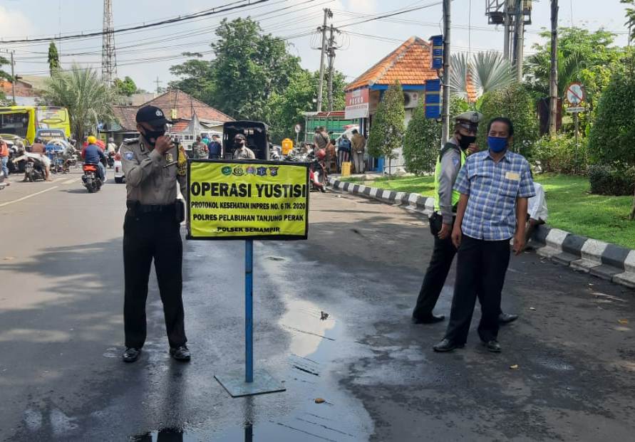 Seputarperak.com- Operasi yustisi penerapan protokol kesehatan digelar Polsek Semampir, Polres Pelabuhan Tanjung Perak, Sabtu pagi, 24 Oktober 2020 di Jalan Nyamplungan. Operasi ini dilaksanakan dalam wujud razia masker.